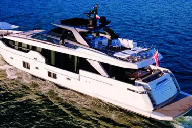 Twin 2,434hp MTU diesel engines provide an impressive maximum speed of 28 knots, cruising speed of 24 knots, and a range of 1,350 nm at 10 knots. Zero speed stabilisers ensure comfort at anchor, and a Williams dieseljet 445 tender stows neatly in the lazarette.