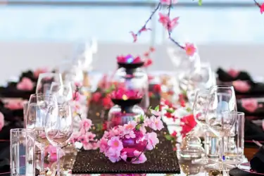 Occasions usually dictate the type of table setting. For example, an anniversary celebration should have a romantic theme, with soft lighting and candles, and elegant crockery and flowers all adding to the intimate sense of occasion. A New Year’s Eve celebration or birthday might require more of a fun or risqué theme. 'We had a 13th birthday for one of our younger guests and he loved football, so we transformed the table into a visual football pitch,' says Tiffany. 'We also recently celebrated a client’s special birthday with a masked ball/ Phantom of the Opera evening. The table was decorated with masques and peacock feathers, while to add to the drama the guests received an invitation and mask on their pillow.'