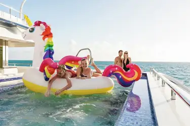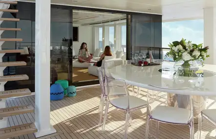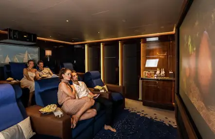 Alternatively, while you are enjoying the latest blockbuster yourself, your youngsters can play on deck under the watchful eye of the crew, or even try some watersports. Evenings can be equally flexible, with adults socialising in the main lounge while the sky lounge is transformed into a kids’ zone, allowing the adults to linger, untroubled, over their gourmet dinner.