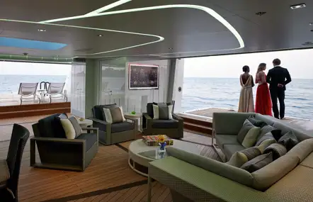 Larger yachts with huge guest deck spaces are second to none. The almost indecently large outside areas feature a number of superb dining locations for star-studded festive celebrations, along with a pool floor that rises and transforms into a dancefloor allowing guests to continue the party into the night.