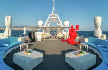 A vast sun deck with big party speakers and lightshow. She has a casino too