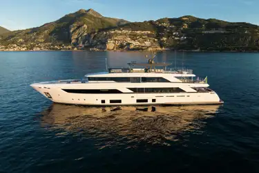 This brand-new yacht is the tenth hull in the popular NAVETTA 42 series. Delivered in 2023, the 41.8m (137.1ft) hull is of GRP construction, built to RINA classification and MCA compliance by Custom Line (Ferretti) in Ancona, Italy. The yacht is the sole design vision of Zuccon International Project.