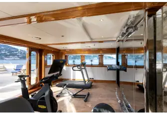 90.1m (295.6ft) NERO, the queen of any anchorage anywhere in the world, has an all-new state-of-the-art gym on the sun deck. It's packed with top-of-the-range Technogym kit including a Kinesis, treadmill, cross trainer and a cardio bike. Guests will also find loose weights and everything needed for yoga and pilates including a qualified physical trainer as part of the crew.