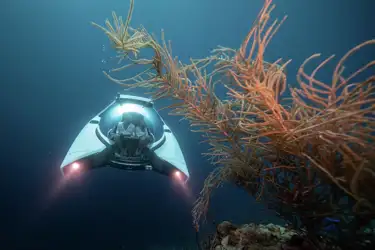 Subs are typically used for recreation, but often once you’ve made a connection with the underwater world, the desire to go deeper, further and understand more follows. As dappled sunlight begins to disappear the deeper the sub sinks, coral formations and a multitude of fish, eels, turtles and crustaceans will join you. As giant pelagics glide passed, and the sub sinks deeper, some of the brightest iridescent species can be found, from squids and phytoplankton to ethereal floating jellyfish. Every journey brings something new, whether 100m from the surface or 1,000m deep.
