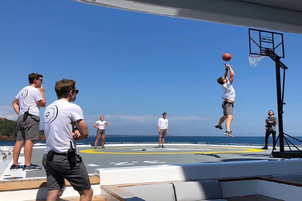 There's a fully certified helipad with MD600 helicopter available by separate arrangement, expanding your adventures to include heliskiing, venturing deep up a river delta or straight to the finest spas and restaurants. The five lower deck VIP suites are linked directly to the huge beach club, with sea terrace, lounge, gym equipment and spa with sauna and steam room, for the ultimate ease of access, and an elevator links all five guest decks.