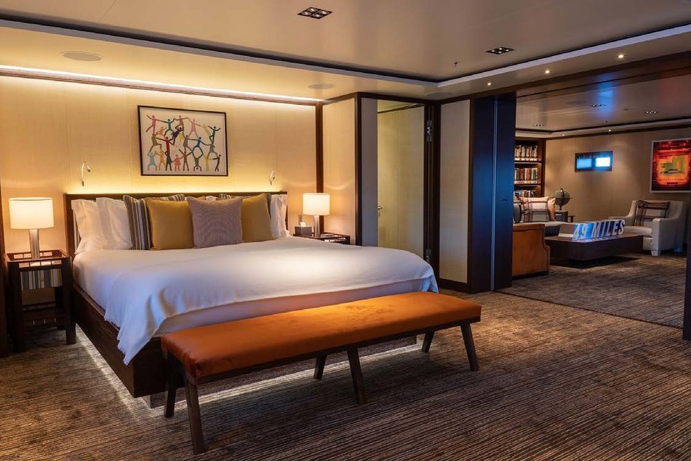 The main deck is the private owner's deck with a huge lounge, two en suite bedrooms, fore and aft for a choice of views when you awake, and a private terrace aft. Add a spacious VIP suite that takes up most of the bridge deck and five double suites on the lower deck, and you have palatial appointments for 12 adventurous guests.