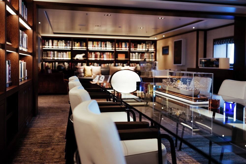 From the shaded dining and the jacuzzi on the sun deck to the five different sun lounges over four decks, each with its own mood, to the cinema, games deck and spacious convivial observation lounge with wraparound views and an internet lounge next door, she has it all.
