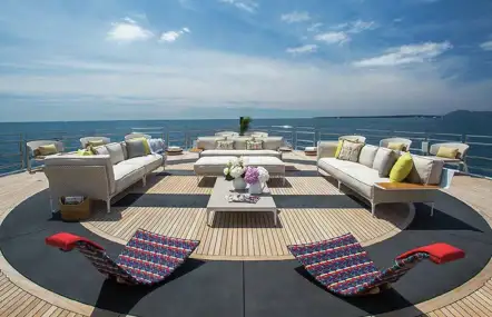 This wheelchair friendly yacht has an elevator from main to sun deck and a helipad means she's ready to drop 12 guests at the top of the best slopes there are.