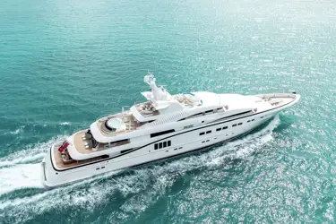 The phenomenal SECRET combines the renowned talents of German shipyard Abeking & Rasmussen, Sam Sorgiovanni and Jim Harris, all serial award winners. A beam of 12.4m (40.7ft) gives her an impressive internal volume of 2,240GT and she has expansive and versatile guest deck spaces across five decks.