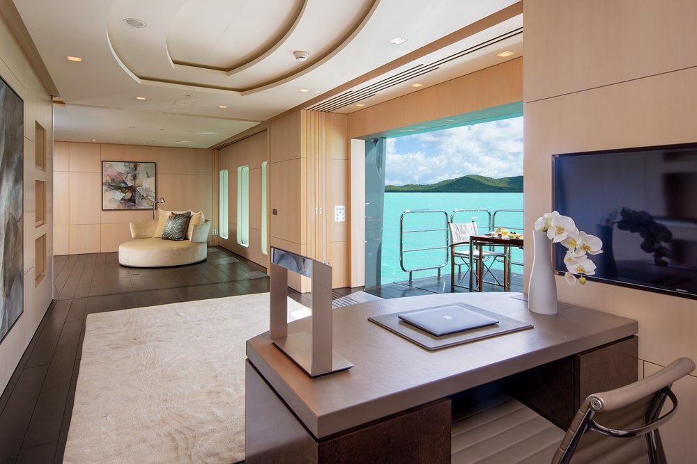 SIREN is a sophisticated playground with many pleasures designed for al fresco living; she has infinite sunbathing options, an outdoor cinema and a wide choice of dining areas. It is hard to choose just one feature. Among my favourites are the fold-out balcony in the master suite, the indoor cinema and our signature beach club and gym with a Peloton and Pilates Reformer.