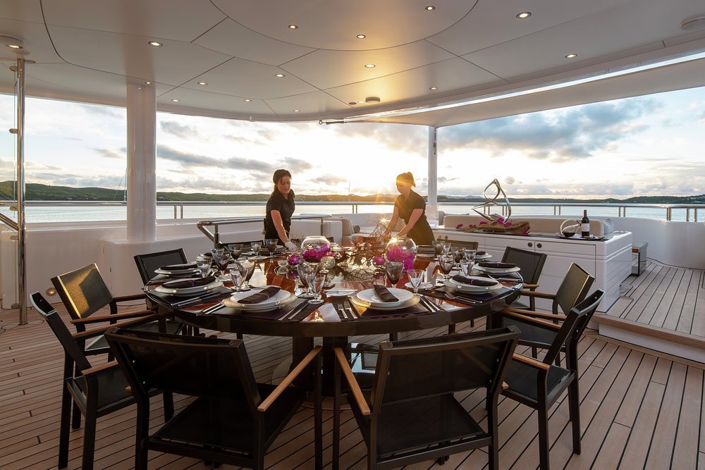 Firstly, it has to be to enjoy SIREN’s gastronomic offerings. The epitome of luxury living is the haute cuisine prepared by SIREN’s award-winning chefs. Tailor-made menus for our guests include dishes featuring signature tastes and spices representative of all the countries SIREN and her chefs have visited, including delicious salads, creative sushi rolls, original seafood entrees and signature desserts. Whether it's elaborate formal dining on the bridge deck, a beach BBQ, a sunset grazing platter on the swim platform, or tapas and champagne around the jacuzzi, SIREN and the crew offer the ultimate dining options for every occasion.