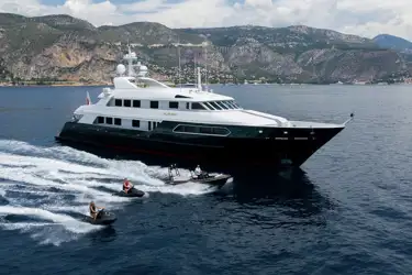 LA POLONIA, now renamed, is a 46.8m (153.6ft) motor yacht delivered in 1999 by the US yard Swiftships. Built entirely in aluminium to ABS classification, with a draft of only 2.7m (8.1ft), she completed her latest class survey in 2019. The yacht underwent a significant refit in 2014 including the fitting of new main engines and the comprehensive maintenance plan has seen further upgrades to the yacht in 2018-19.