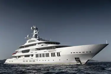 Among the yacht's range of features is a 5m-diameter (16.5ft) circular pool on the main deck aft, a main deck wellness spa with beauty salon and a gym with a sliding glass wall and an owner's deck lounge that converts into a cinema. The owner's suite forward on the upper deck has a private lounge, jacuzzi and foredeck terrace as well as private balconies port and starboard.