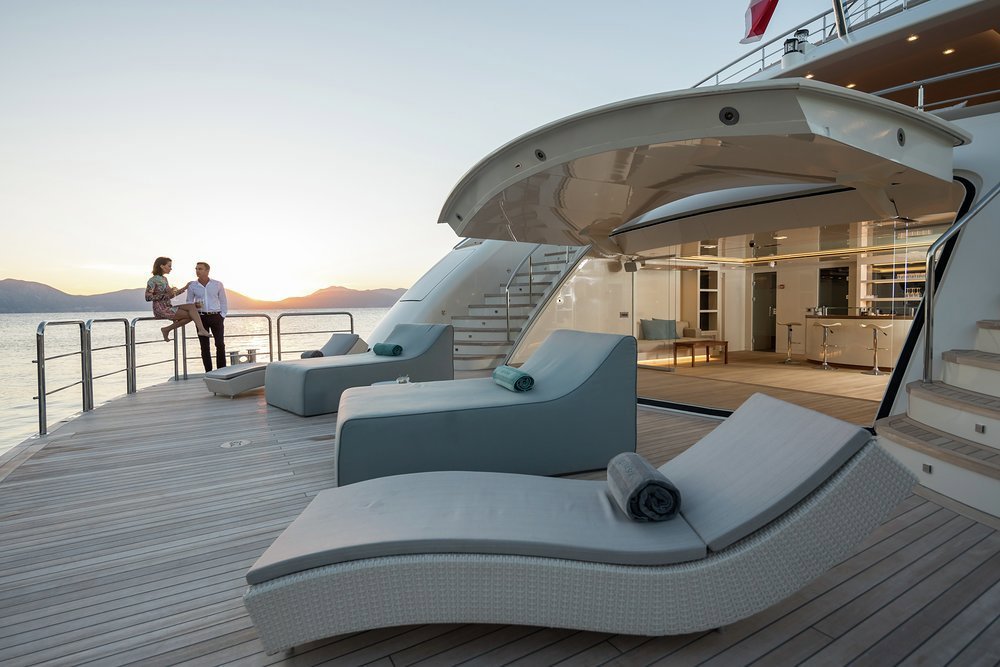 Offering a vast choice of wellness amenities, from outdoor lounging and dining options to a world-class inventory of watertoys, superyacht O'PTASIA is hard to beat. When not in the sea level beach club or the fully equipped gym, guests while away the hours in the steam room or take a dip in the bridge deck jacuzzi. It’s a floating retreat well-suited to wellness lovers.